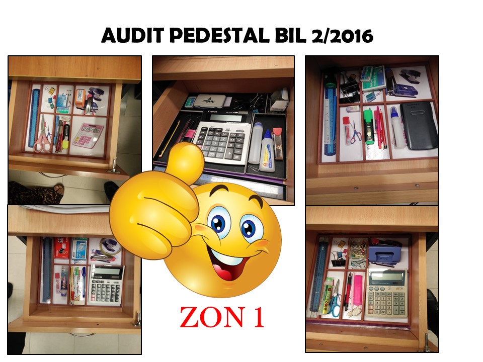 Audit diteruskan dengan sesi lawatan audit ke Zon 1 dan Zon 2 disusuli dengan semakan fail Jawatankuasa Induk di Bilik Mesyuarat. Audit berakhir pada jam 1.00 tengahari.